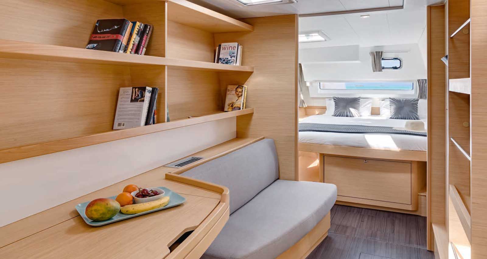 Il pozzetto di poppa, ampio, protetto e ben collegato al salone, è il luogo ideale per cenare sotto le stelle o sorseggiare un aperitivo al crepuscolo, condividendo momenti preziosi con i tuoi compagni di viaggio. Vivi l’emozione di ammirare un tramonto sul mare, quando il cielo si tinge di colori indimenticabili, dalla comodità della tua imbarcazione. La natura circostante, vibrante e selvaggia, farà da cornice a questa esperienza indimenticabile. Grazie al suo layout funzionale, ogni spazio è ottimizzato per il tuo piacere. Scegli il Lagoon 42: la tua avventura di lusso e relax sta per iniziare.